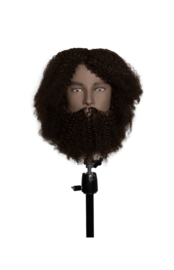 La tête à coiffer professionnelle homme Scott, cheveux afro avec barbe crépu, la nouveauté de chez Exalto indispensable pour les coiffeurs qui souhaitent perfectionner leur technique de coupe homme sur cheveux texturés, cheveux afro type crépus et taille de barbe.